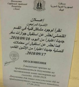 وذكرت مصادر لسلام نيوز أن بإمكان المواطنين السوريين في أوكرانيا إجراء معاملاتهم القنصلية عبر القنصلية الفخرية في أوديسا.