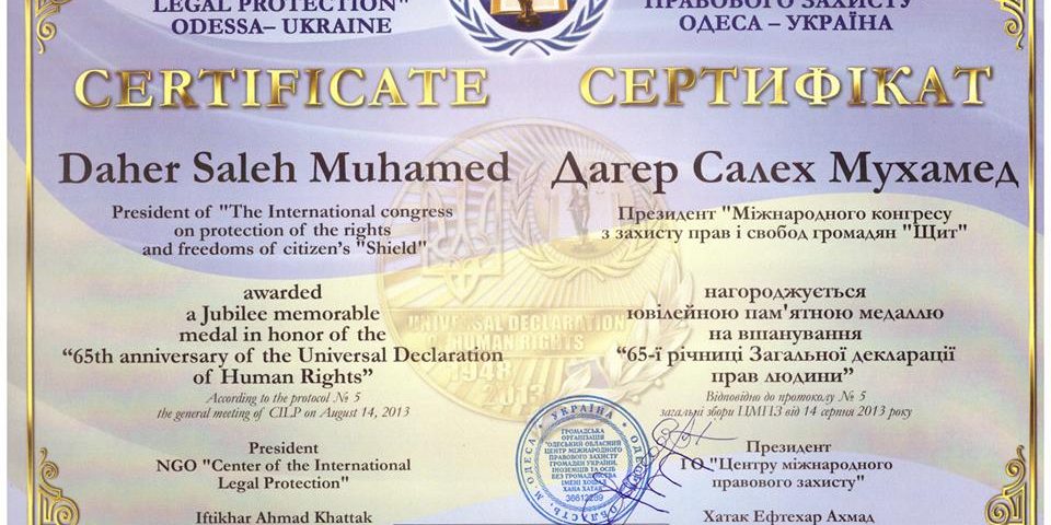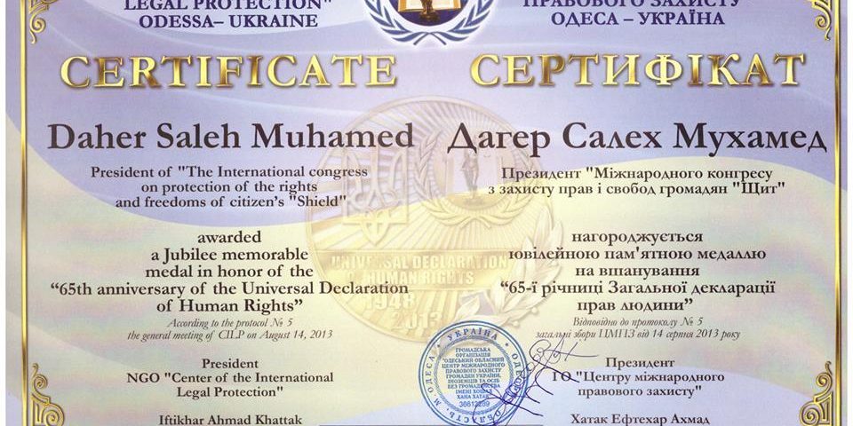 Honored Dr. Saleh Muhamed Daher, The president of the NGO “International Congress for the Protection of the Rights and Freedoms of Citizens – SHIELD” after he […]